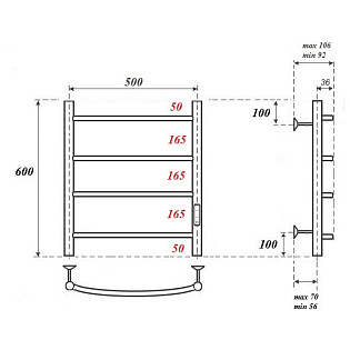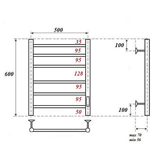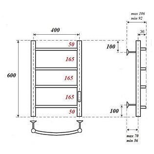 Полотенцесушитель электрический 50х60 см с диммером справа черный Point "Меркурий" PN83856B П6