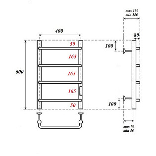 Полотенцесушитель электрический 80х50 см черный Ewrika "Сафо БРР"