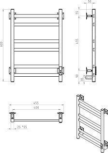 Полотенцесушитель электрический 60х40 см черный Ewrika "Пенелопа КВ"