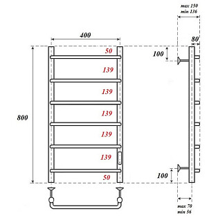 Полотенцесушитель электрический 40х80 см с диммером справа черный Point "Ника" PN08848B П6