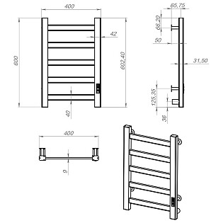 Полотенцесушитель электрический 60х40 см матовый черный Ewrika "Калипсо"