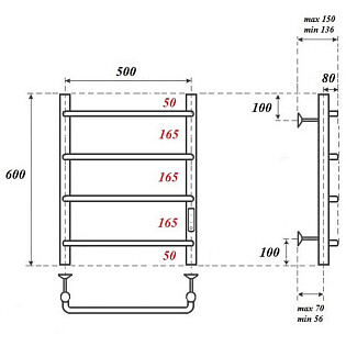 Полотенцесушитель электрический 50х80 см черный Point "Феникс" PN15858B П7