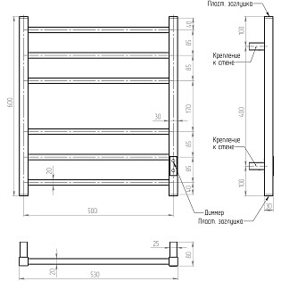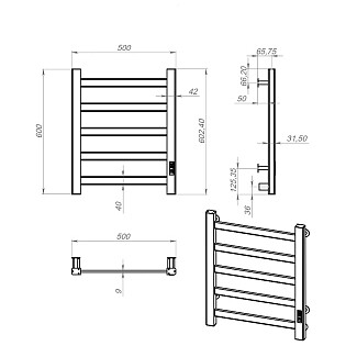 Полотенцесушитель электрический 60х50 см черный Ewrika "Пенелопа" L2 4657812410044