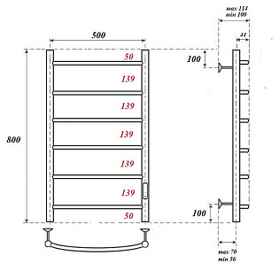 Полотенцесушитель электрический 50х100 см с диммером справа черный Point "Меркурий" PN83850B П10
