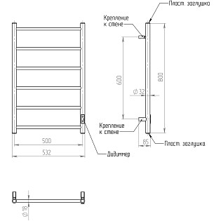 Полотенцесушитель электрический 80х50 см хром Ewrika "Пенелопа КВ7"