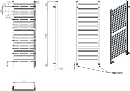 Полотенцесушитель электрический 120х14 см графит Point "Фрея П2" PN20722GB