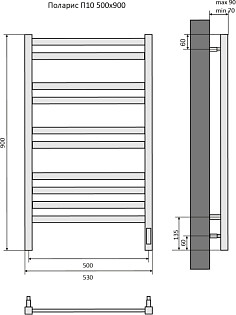 Полотенцесушитель электрический 50х90 см черный муар Aquatek "Поларис П10" AQ EL KO1090BL
