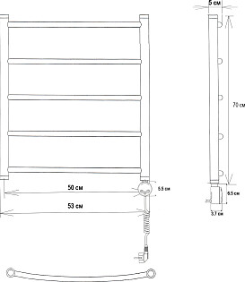 Полотенцесушитель электрический 70х50 см черный матовый Ewrika "Сафо" D R