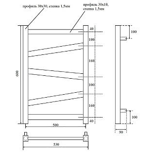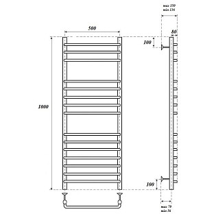 Полотенцесушитель электрический левый, правый 50х60 см черный Point "Меркурий" PN83156BE П6
