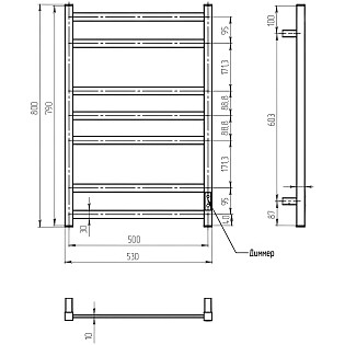 Полотенцесушитель электрический 60х50 см с полкой графит Ewrika "Пенелопа КВ7"