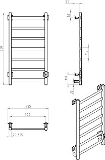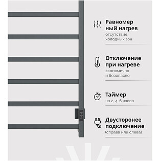 Полотенцесушитель электрический 80х40 см черный Ewrika "Пенелопа КВ7"