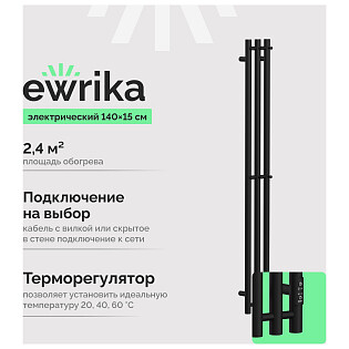 Полотенцесушитель электрический с терморегулятором 140 см черный Ewrika "Пенелопа" Х3