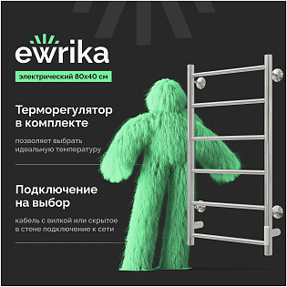Полотенцесушитель электрический 80x40 см черный Ewrika "Сафо" PN 4657763847760