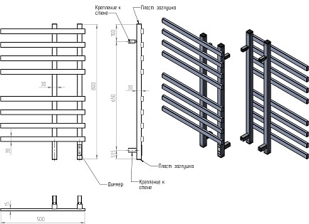 Полотенцесушитель электрический 80х50 см графит Ewrika "Пенелопа КВ7"