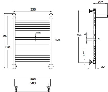 Полотенцесушитель электрический с диммером справа 50х60 см черный Point "Афина" PN04856B П4