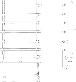 Полотенцесушитель электрический 80х50 см матовый черный Ewrika "Деметра" LP L 4656760000000