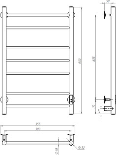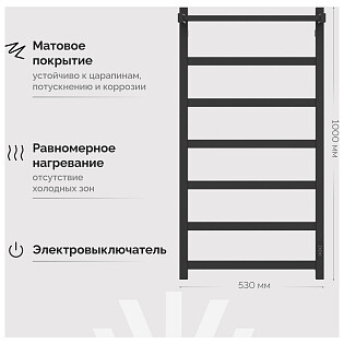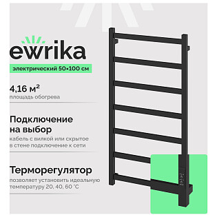 Полотенцесушитель электрический 100х50 см черный Ewrika "Пенелопа КВ7" 4657812418477