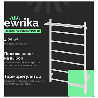 Полотенцесушитель электрический 100x50 см белый Ewrika "Пенелопа" Z 4657771773716