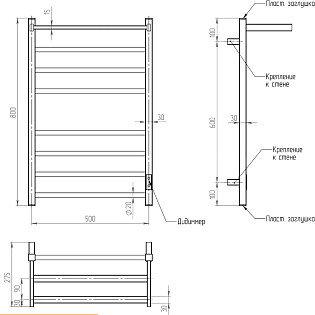 Полотенцесушитель электрический 80х50 см черный Ewrika "Сафо" АС3