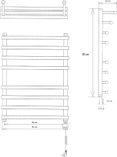Полотенцесушитель электрический 80х50 см золотой Ewrika "Пенелопа" КВ6 4657819950529