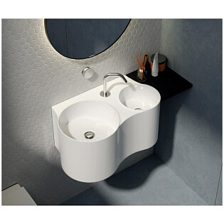 Раковина подвесная двойная фарфоровая ассиметричная 38х62 см белая Cerutti SPA Double Ami CT9701