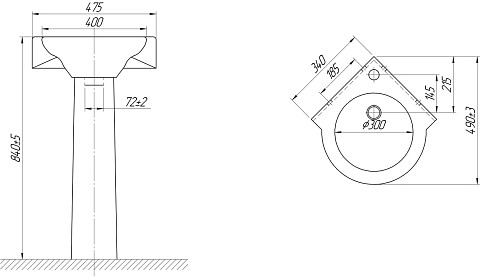 Раковина угловая с пьедесталом белая Diwo "Псков" 0100