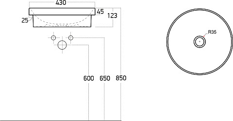 Раковина-чаша фарфоровая круглая 40 см белая Diwo Moduo 40 Ring 63569