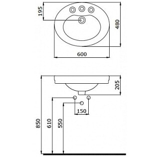 Раковина накладная фарфоровая полукруглая 42х51 см белая Универсал "Элегия-50" БП-Д000000497