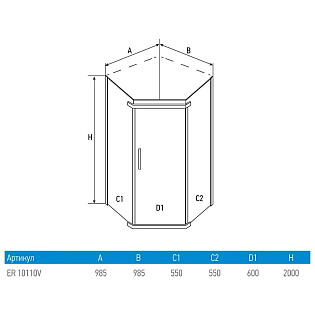 Душевой уголок пятиугольный 100х100 см хром Erlit Comfort ER10110V-C1