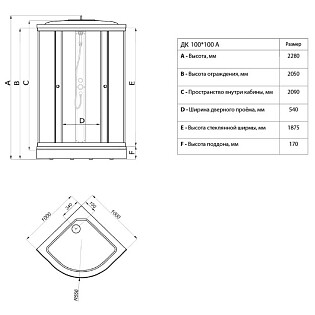 Душевая кабина четверть круга с низким поддоном 100х100 см градиент Triton "Лайт А" Щ0000039805