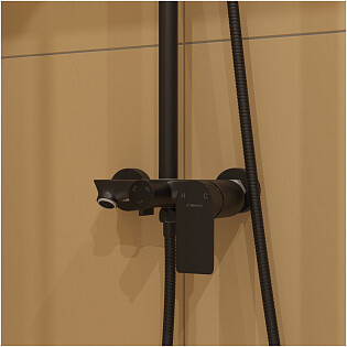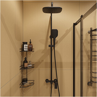 Душевой уголок 90х90 см Diwo "Анапа" со стойкой Stworki "Муле" и лотком черный CK Drain 1105-00165