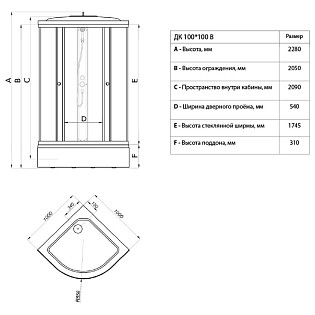 Душевая кабина четверть круга со средним поддоном 100х100 см градиент Triton "Лайт В" Щ0000039806