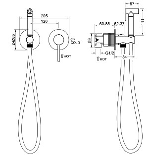 Гигиенический душ со встроенным смесителем и шлангом черный Aquatek "Вега" AQ1019MB