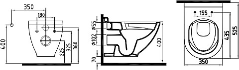 Унитаз подвесной Stworki "Молде" 7551N003-7700 с инсталляцией Diwo 4501, с кнопкой смыва 7325