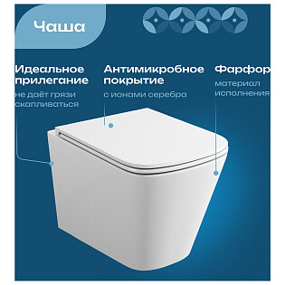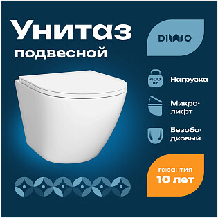 Унитаз подвесной безободковый с микролифтом белый Diwo "Смоленск" 5412