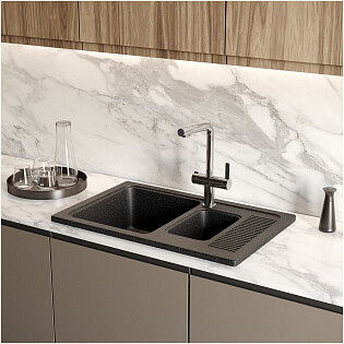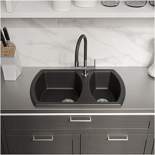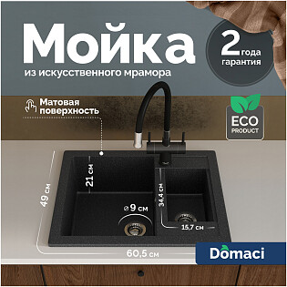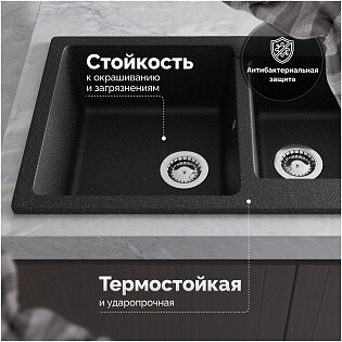 Мойка кухонная из искусственного гранита двойная черная Domaci "Верона" 78-50 черная