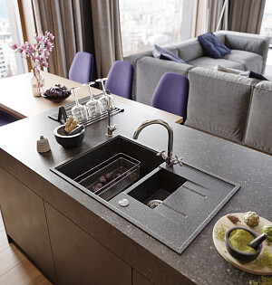 Мойка кухонная кварцевая двойная черная Granfest Quarz 21К черный