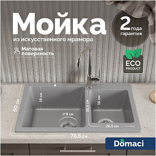 Мойка кухонная светло-серая Domaci "Болонья" М-19-006