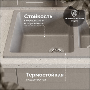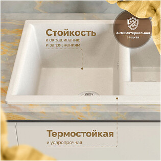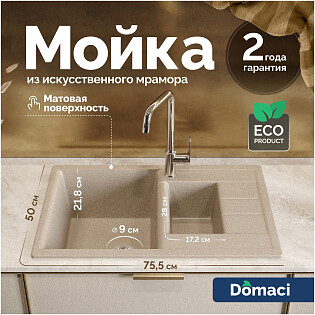 Мойка кухонная из искусственного гранита двойная бежевая Domaci "Верона" 78-50 бежевая