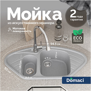 Мойка кухонная серая Domaci "Болонья" М-191-005