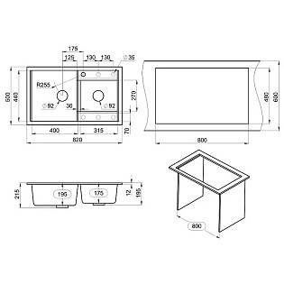 Мойка кухонная мраморная двойная черная Granfest Practik P-780K черный