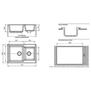 Кухонная мойка кварцевая двойная черная Tolero Loft TL-862 473981