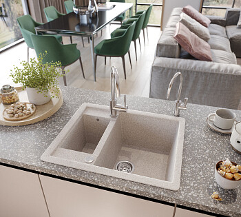 Мойка кухонная с дополнительной чашей бежевая Domaci "Бьелла" DMC-21K бежевая