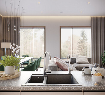 Мойка кухонная антрацит Domaci "Сиена" 54100-112 со смесителем Stworki HWX5015-P01BK