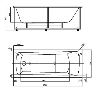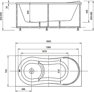 Ванна акриловая прямоугольная 150х70 см с экраном белая Aquatek "Либра" New LIB150N-0000002
