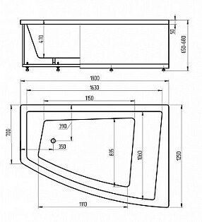 Ванна акриловая ассиметричная правая с экраном 150х95 см белая Aquatek "Бетта" BET150-0000058