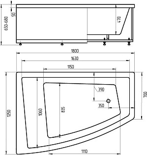 Ванна акриловая ассиметричная левая с экраном 180 см белая "Оракул" ORK180-0000004