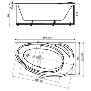 Ванна акриловая с гидромассажем 97х170 см правая белая Aquatek "Бетта" BET170-0000009