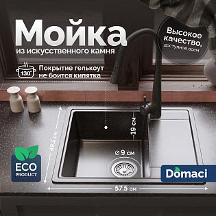Мойка кухонная черная Domaci "Болонья" М-10-002