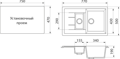Мойка кухонная антрацит Domaci "Болонья" М-15-007